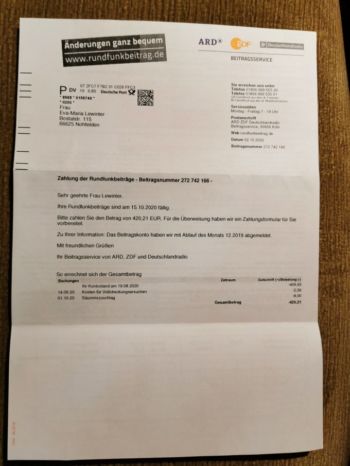 Sie schreiben das Konto wurde mit Datum 12.2019 abgemeldet. Die Abmeldung beim Einwohnermeldeamt erfolgte jedoch am 4.2017 und dies wurde ihnen von mir und anderen mehrfach mitgeteilt.