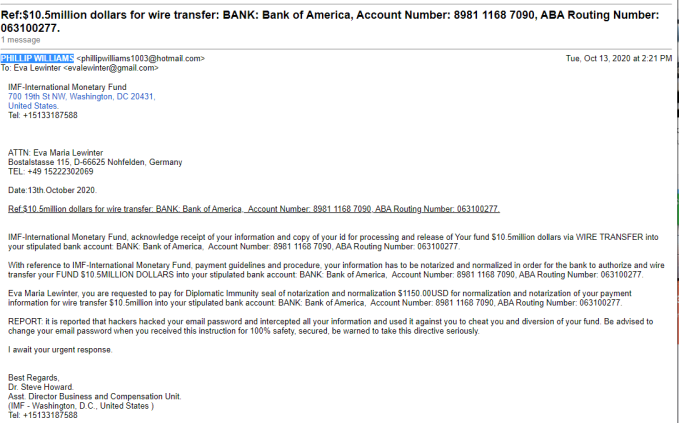 On 14 of October 2020 , there is a phone call with the highlighted messes, most löike put into my pipeline as a self fulfilling prophecy, being “you are going to be arrested”. The caller meant to say if the notarization of the wire transfer isn’t done the receiver of such a high amount is arrested.