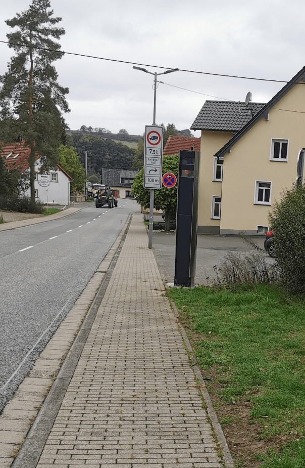 That’s about the situation in Buweiler: they have a 242 m distance between the speed limit sign of 70 km / h and the place name sign that indicates a speed of 50 km / h and the distance of 77 m to the 30 km /h sign and finally a 69.6 m distance to the radar speed trap.