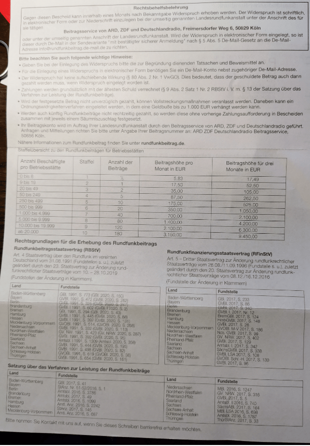 The “ARD ZDF Deutschlandwelle Beitragsservice” charged €400,- for a three-month rental stay in Hamburg in 2017. So far, they have not responded to the request to correct this account. Hence, this organization must be viewed as fraudulent. Since they refused to correct their mistakes for a period of more than three years, this organization must be classified as a criminal organization. Since Germany protects this criminal organization, it can neither be considered democratic nor legal. It must be seen as totalitarian.