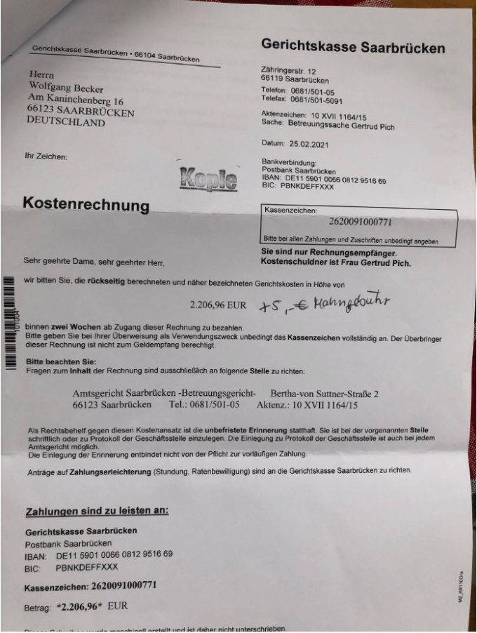Mein Bruder hat mir die beigefügten Dokumente übermittelt mit der Bitte um Kostenübernahme.