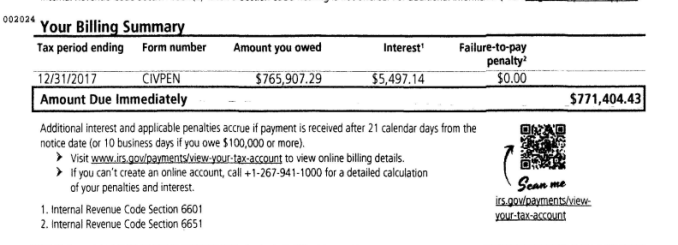 I received a letter from the IRS on the 3rd of May 2021 telling me to pay $771,404.43