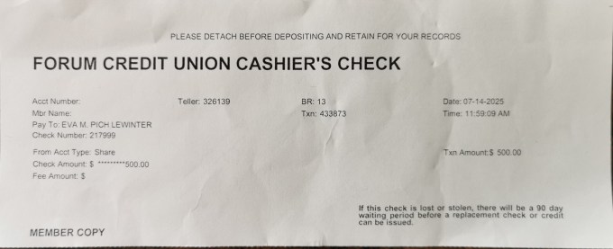 Forum Credit Union can only tell me that the check was cashed, they supposedly don’t know when and were.